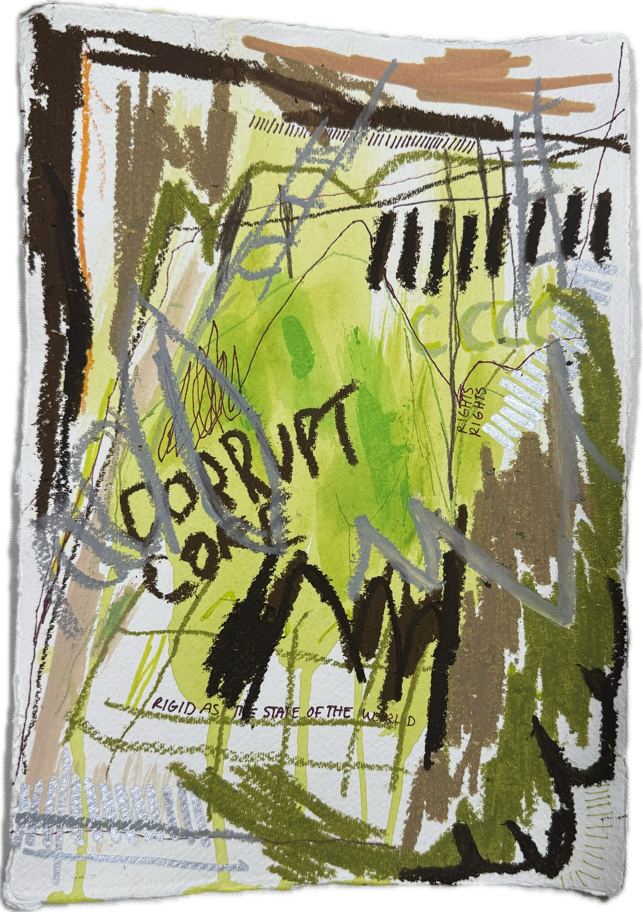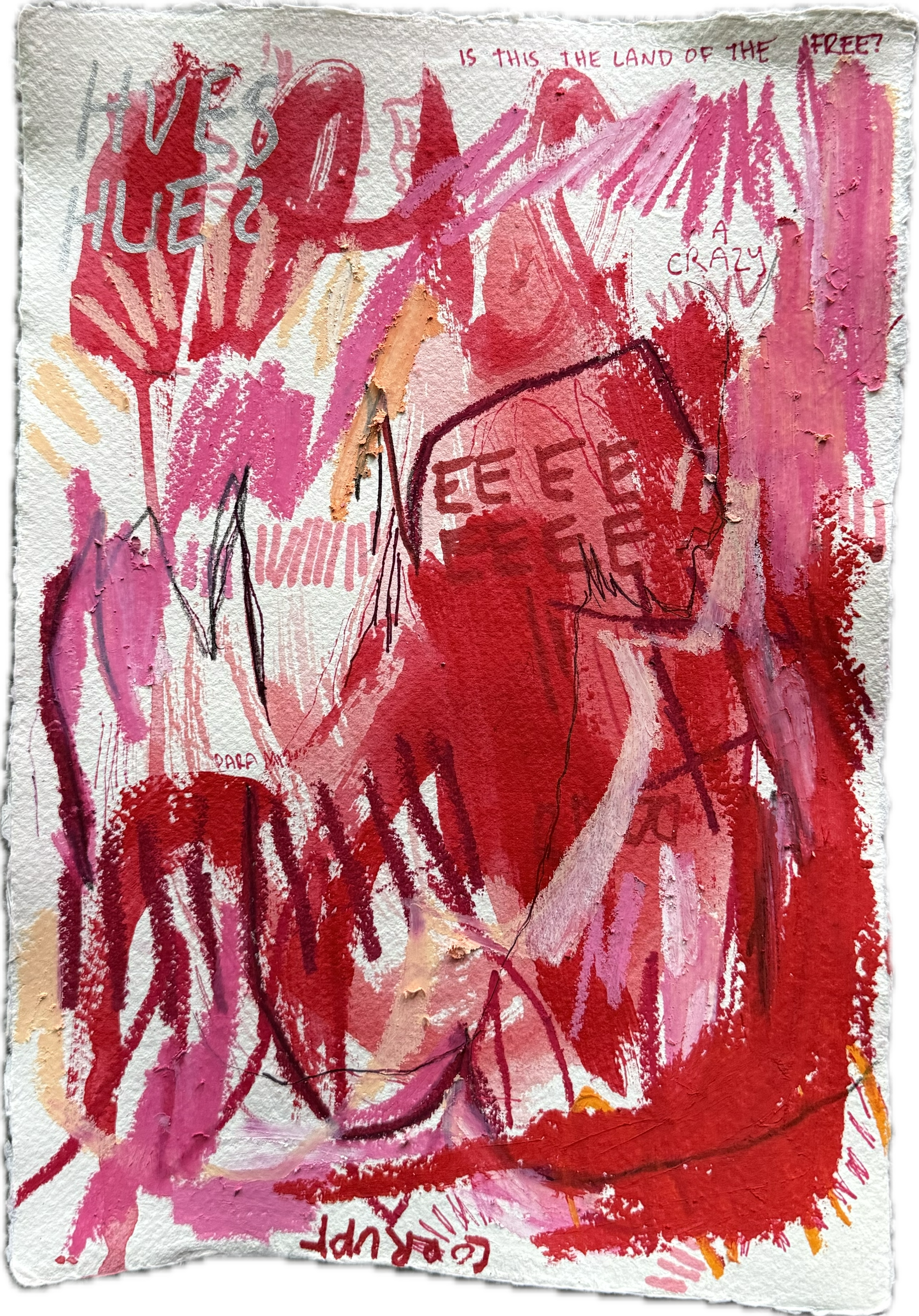 “America is a Problem” Pastel, Acrylic, Sharpie, Graphite, and Paintstik on paper 2025